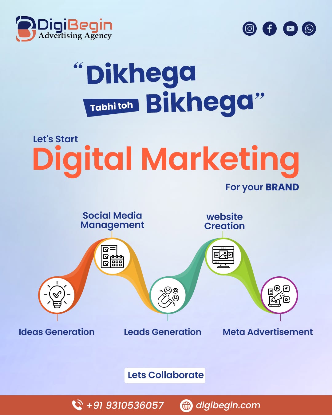 Our vision is to be a leading digital marketing agency, empowering businesses of all sizes to thrive online. We aim to help brands leverage digital strategies for growth, establish a strong presence, and connect meaningfully with their audience.